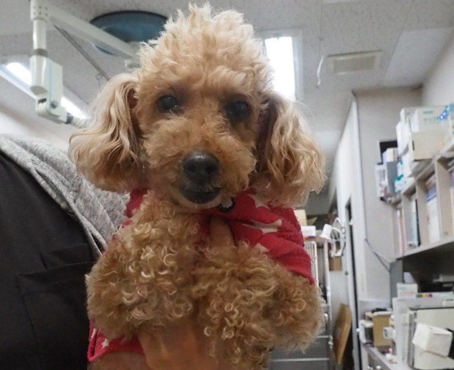 術後の経過は順調です。本日も食欲・元気問題なく、院内での散歩もよく動いています。排尿もできています。